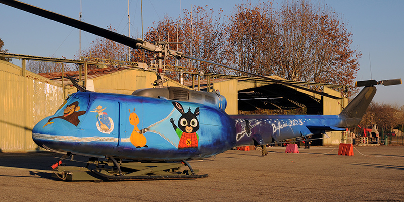 Nella foto: Agusta/Bell AB 205A-1 MM80713 / E.I.342 (c/n 4278) "special colours coniglietto Bing" al Family Day di Venaria il 5 gennaio 2023. (Aeromedia)