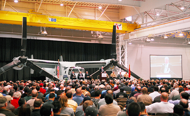 Gene Cunningham, direttore industriale per il V-22, ha ringraziato le maestranze della Bell e della Boeing che collaborano da anni nella costruzione degli Osprey, sottolineando che dodici esemplari di MV-22* sono attualmente in Iraq, in dotazione allo Squadron VMM-263 dei Marine Corps.