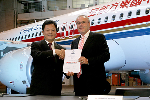 China Eastern Chairman Li Fenghua and Airbus CEO Gustav Humbert during the delivery of the 2,500th A 320 Family aircraft. (Airbus)