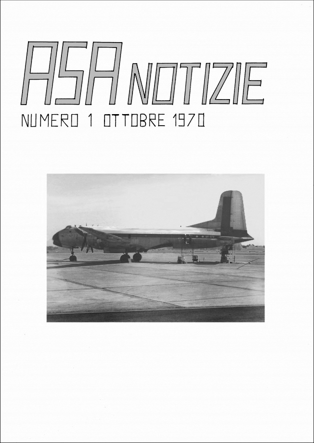 Nella foto: La copertina di "ASA Notizie numero 1 - ottobre 1970" con la foto del Douglas C-74 Globemaster HP-379 abbandonato a Caselle dall'Air System nell'aprile 1964. Nell'estate 1969 l'aereo era in fase di pittura con i colori della forza aerea della Repubblica Popolare Cinese per comparire in una scena del film "Italian Job". (scarica ASA Notizie numero 1 - ottobre 1970)