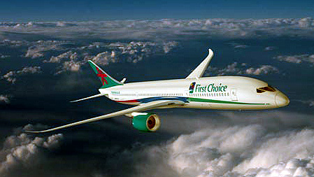 B.7E7 Dreamliner with the colours of First Choice Airways (UK). (Boeing)