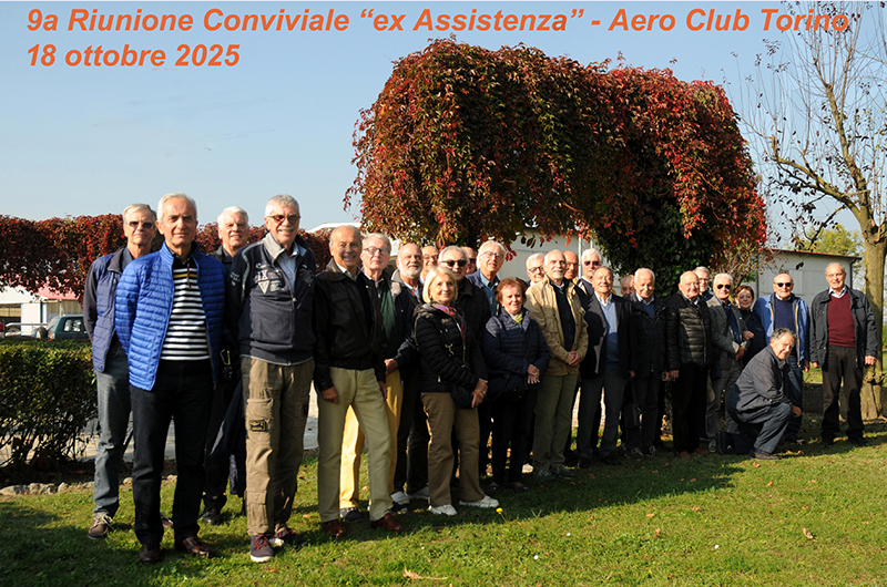 Sabato 18 ottobre 2025, una bella giornata di sole, all'Aero Club Torino si è tenuta la nona Riunione Conviviale dei pensionati che hanno lavorato al servizio Assistenza dell'Aeritalia e delle successive incarnazioni della stessa società aeronautica. Una tradizione annuale che si rinnova dal 2013 quando i partecipanti furono solo nove. E' un'occasione informale per mantenere i contatti tra gli ex colleghi delle varie discipline che insieme contribuiscono a mantenere in efficienza i velivoli. Quest'anno i partecipanti sono stati 27 e, come negli anni precedenti, la riunione è stata intermezzata dal pranzo al ristorante Campo Volo.
