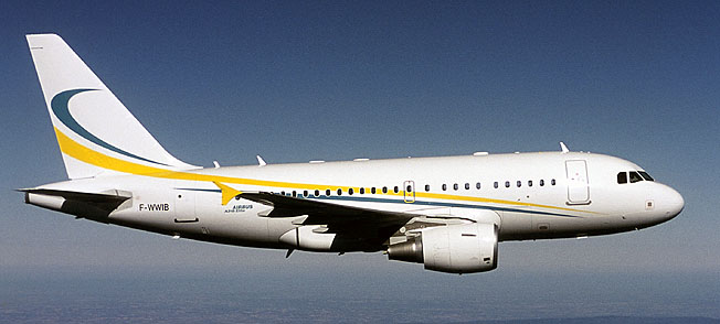 Airbus A 318 Elite of Comlux of Switzrland, with temporary F-WWIB test markings. (Airbus)