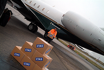 I pacchi con la proposta CTAS scaricati dal Global Express all'aeroporto di Brussels. (Raytheon)