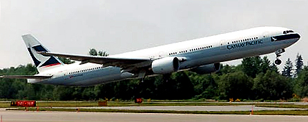 La Boeing ha comunicato di aver ricevuto un nuovo ordine dalla Cathay Pacific Airways per tre B.777-300. Per i nuovi aerei, il vettore con base ad Hong Kong ha scelto i motori Rolls-Royce Trent 800. Questi velivoli, configurati per 382 passeggeri (59 in business class e 323 in economica) saranno usati principalmente sulle rotte della regione Asia-Pacifico. Il valore della commessa si aggira sui 600 milini di dollari.