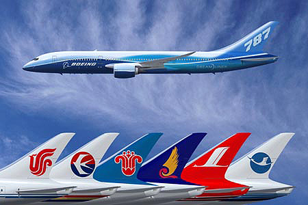The Boeing Company and the China Aviation Supply Company today signed a preliminary agreement for the purchase of 60 B.7E7 Dreamliner by Chinese airlines. The agreement, which will be finalized at a later date, is valued at approximately US$7.2 billion, based on average list prices. The airplanes will be delivered to six Chinese carriers - Air China, China Eastern Airlines, China Southern Airlines, Hainan Airlines, Shanghai Airlines and Xiamen Airlines. Each carrier is scheduled to receive its first B.7E7 in time for the 2008 Beijing Olympics.