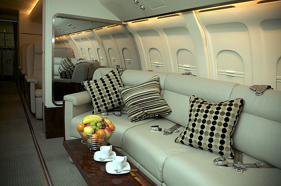 The curved sofa opposite the entertainment system fitted inside the new BAE Systems Avro Business Jet. (BAE Systems)