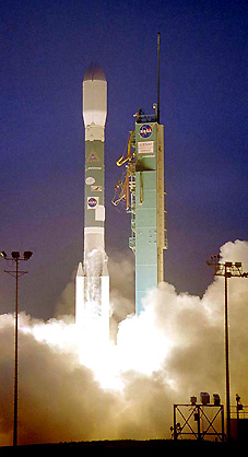 A Boeing Delta II rocket successfully launched the Ice, Cloud and land Elevation Satellite (ICESat) and the Cosmic Hot Interstellar Plasma Spectrometer Satellite (CHIPSat) today in a dual primary payload mission for NASA. The Delta II lifted off at 4:45 p.m. PST from Space Launch Complex 2W, Vandenberg Air Force Base, Calif., delivering both satellites to circular polar orbits. ICESat was deployed first at one-hour and four minutes into flight, followed by CHIPSat, which was deployed 19 minutes and 20 seconds later.