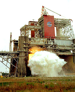 March 17, 2001. The first successful static fire test on a common booster core with RS-68 main engine destined to Boeing Delta IV launch vehicle. The test was performed at the John Stennis Space Center, Miss. (Boeing)