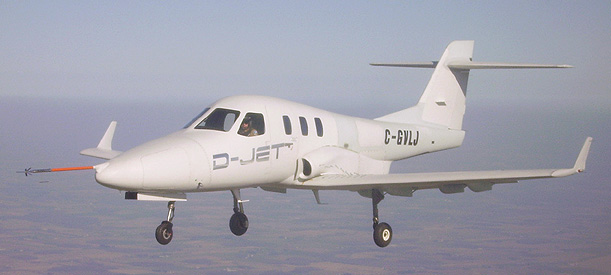 Il prototipo del Diamond D-JET, a carrelli estratti, durante il primo volo. (Diamond Aircraft)