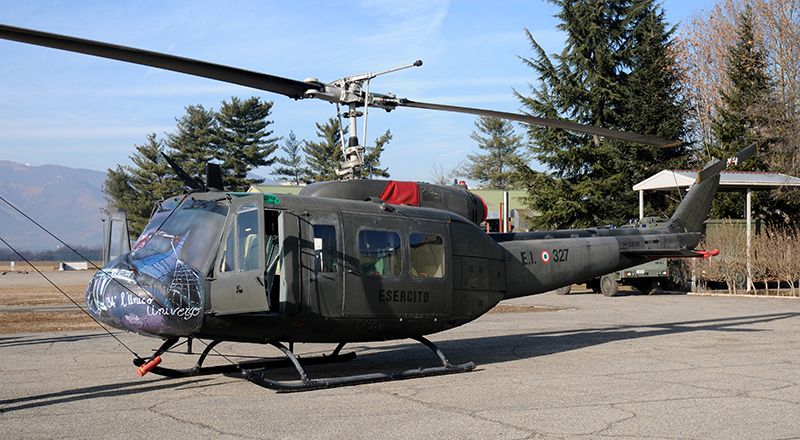 Nella foto: Agusta/Bell AB 205A-1 MM80698 / E.I.327 (n/c 4226) "colori speciali Uomo Ragno" al Family Day di Venaria il 4 gennaio 2019. (Aeromedia)