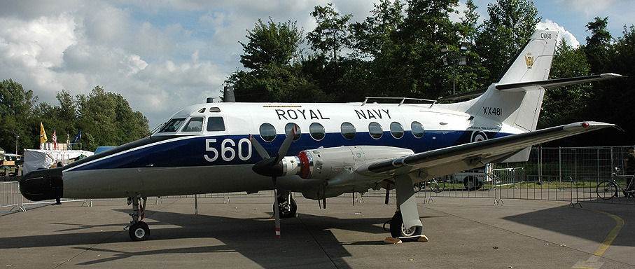 Fourteen Jetstream T Mk.2s were originally delivered to the Royal Navy over a period from 1978-1983 and twelve aircraft remain in service. Powered by twin Turbomeca Astazou XIV turboprop engines, the aircraft have an endurance of five hours and are configured with radar and other equipment consoles for training. The normal crew is one pilot, one observer and one student observer. Also the Royal Air Force operated a total of 12 Jetstream T MK.1 trainers, retired in 2003.