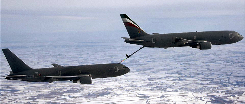 Il 17 dicembre scorso, durante un volo nel cielo del Kansas, una cisterna volante Boeing KC-767 destinata all'Aeronautica Militare Italiana ha rifornito in volo un altro KC-767 italiano. E' la prima volta che questo tipo di "tanker" viene rifornito in volo da un altro velivolo.