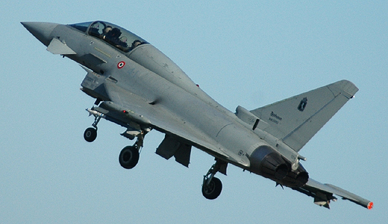 Eurofighter EF 2000 biposto 4-1/MM55093 dell’Aeronautica Militare atterra a Torino/Caselle nel 2006. (Aeromedia)