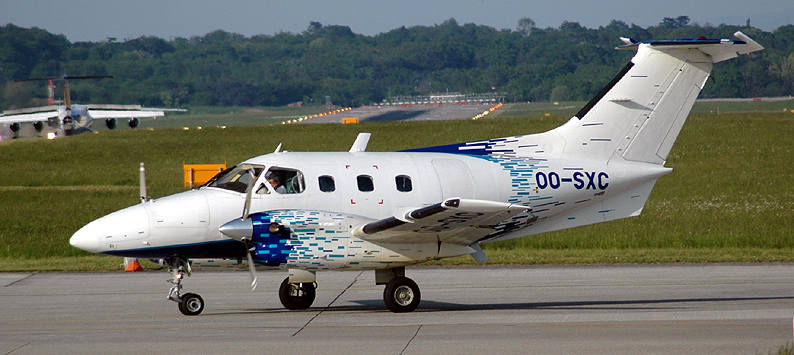 Embraer EMB-121 OO-SXC (c/n 121042), a former SABENA aircraft, taxiing at Geneva/Cointrin in 2006. In 1981, the Belgian airline bought five Xingus used to train their pilots. (Aeromedia)