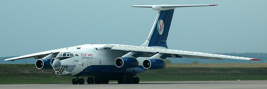 Ilyushin Il-76TD 4K-AZ55 of Silk Way Airlines, cargo carrier of Azerbaijan, taxiing at Hahn airport (Germany), in April, 2006. (Aeromedia)