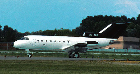 Yakovlev Yak-40 EL-CAR of Ales Airlines ready for take-off at Milan/Linate airport (Italy) 1999.