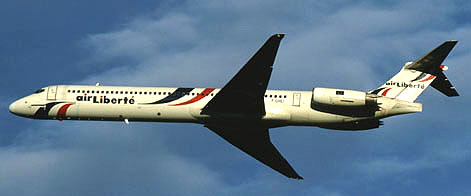 McDonnell Douglas MD-83 F-GHEI con i colori della Air Liberté. Torino/Caselle 2002. (Aeromedia)