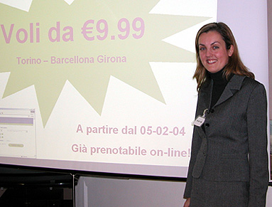 Santina Farinella, Ryanair Media & Advertising Manager, announces the new Turin-Barcelona/Girona service. (Aeromedia)