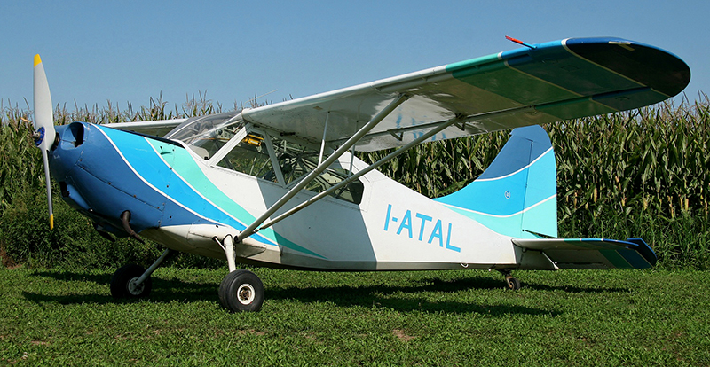 Lo Stinson L-5B Sentinel I-ATAL utilizzato per il traino alianti dall'AVAG presso l'aviosuperficie di Envie (Cuneo). (Aeromedia)