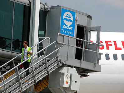 Gli attuali pontili d'attracco dei velivoli commerciali vengono manovrati da un operatore specializzato. (Aeromedia)