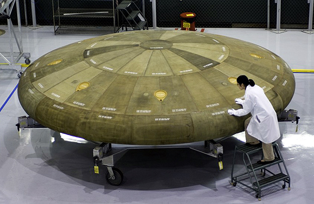 Elizabeth Chu, tecnico della Boeing Advanced Network and Space Systems, controlla il prototipo dello scudo termico (Thermal Protection System) sviluppato nell’ambito del progetto per la capsula Orion, il nuovo Crew Exploration Vehicle della NASA. Questo primo pezzo, in particolare, non è destinato all’impiego ma serve per verificare il processo produttivo ed il comportamento dei materiali che lo compongono.