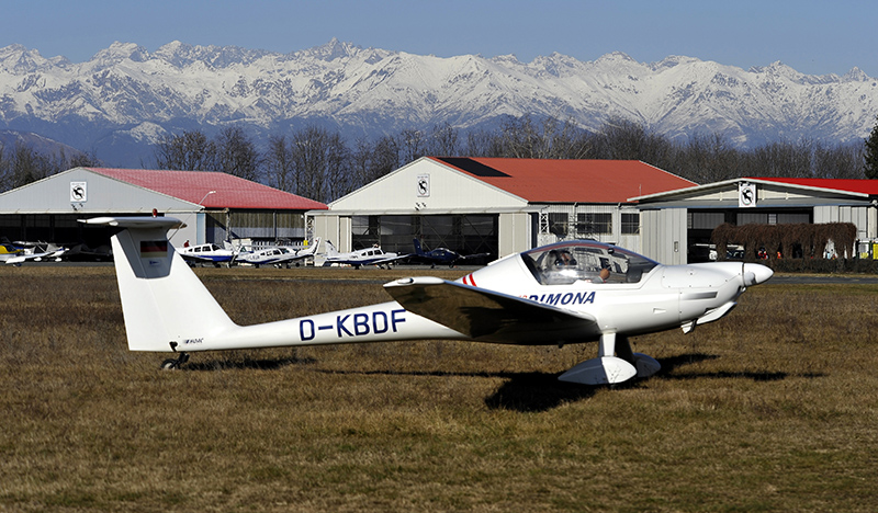 Nella foto: HOAC HK 36R Super Dimona D-KBDF del Motorflugsportgruppe di Donauwörth-Genderkingen in rullaggio all'aeroporto Torino/Aeritalia. (Aeromedia)