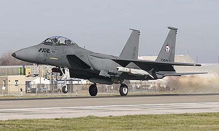 Boeing successfully conducted the first flight of its Stand-off Land Attack Missile Expanded Response (SLAM-ER) missile recently aboard an F-15E Strike Eagle aircraft. The flight captured F-15 aerodynamic performance information while carrying the new long-range missile and the associated AWW-13K Data Link Pod, supporting the Republic of Korea's (ROK) F-15K program. In June 2002, the ROK became the first international SLAM-ER customer when it selected the F-15K.