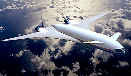 The Sonic Cruiser, a new airplane concept unveiled by Boeing on March 29, 2001, has a dramatic new configuration and is designed to fly at speeds of up to Mach 0.98 to shorten travel times. The project has not yet been formally begun.