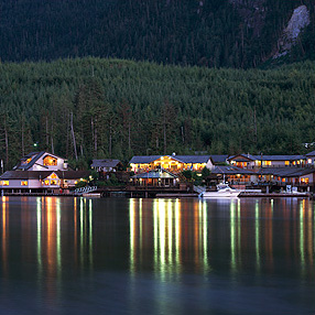 A night shot of the exclusive tourist resources of the Sonora Island, British Columbia, Canada. (Sonora Resorts)